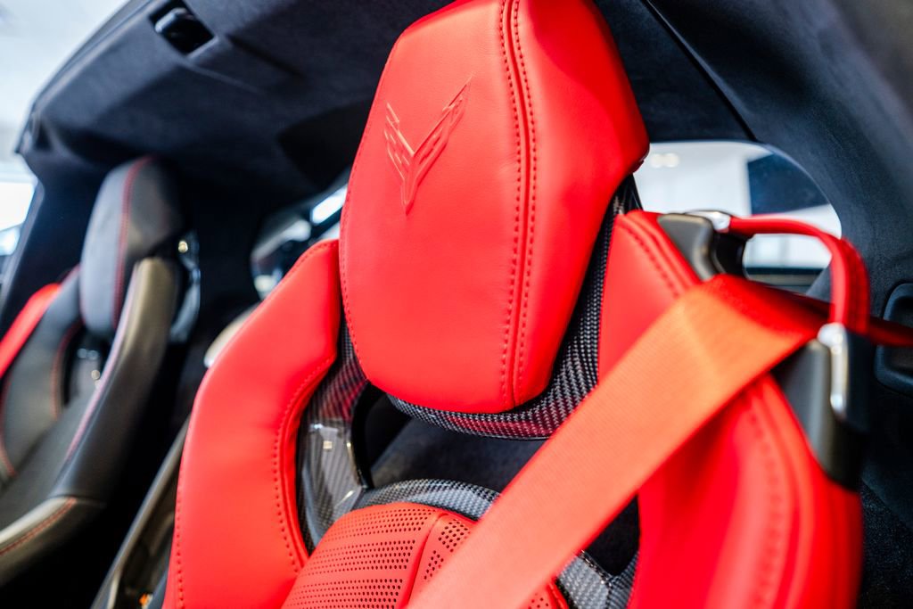 Carbon Flash-Painted Carbon Fiber Aero Package (Carbon-Flash Painted Carbon Fiber Ground Effects), Custom Leather Wrapped Interior Package, Memory Driver and Passenger Convenience Package, Preferred Equipment Group 3LZ (2 Cargo Nets, 8-Way Power Driver Seat Adjuster, 8-Way Power Passenger Seat Adjuster, Bose Performance Series Sound System with 14 Speakers, Driver Power Bolster Seat Adjuster, Electrical Theft Deterrent System, GT2 Bucket Seats, HD Front and Rear Vision Cameras, Heated and Vented Driver and Passenger Seats, Heated Steering Wheel, Passenger Power Bolster Seat Adjuster, Performance Data and Video Recorder, Power Driver Lumbar Control Seat Adjuster, Power Passenger Lumbar Control Seat Adjuster, Power-Adjustable Outside Heated Mirrors, Rear Cross Traffic Alert, Side Blind Zone Alert, Universal Home Remote, Vehicle Inclination Theft Deterrent Sensor, Vehicle Interior Movement Theft Deterrent Sensor, and Wireless Phone Charging), Sueded Microfiber-Wrapped Upper Interior Trim Package, Z07 Carbon Flash Aero and Wheel Package, Z07 Performance Package (4-Wheel Antilock 4-Wheel Disc Carbon Ceramic Brakes, Dark Gray Metallic-Painted Calipers, and Z07 Suspension with Magnetic Selective Ride Control), 14 Speakers, 4-Wheel Disc Brakes, ABS brakes, Adaptive suspension, Air Conditioning, Alloy wheels, AM/FM radio: SiriusXM, Auto High-beam Headlights, Auto-dimming door mirrors, Auto-dimming Rear-View mirror, Automatic Leveling System Headlamp Control, Automatic temperature control, Black Exhaust Tips, Brake assist, Bright Red-Painted Calipers, Bumpers: body-color, Compass, Dark Stealth Front and Rear Crossed Flags Emblem, Delay-off headlights, Driver door bin, Driver vanity mirror, Dual front impact airbags, Dual front side impact airbags, Electronic Stability Control, Emergency communication system: OnStar and Chevrolet connected services capable, Exterior Parking Camera Rear, Four wheel independent suspension, Front anti-roll bar, Front Bucket Seats, Front Center Armrest, Front dual zone A/C, Front License Plate Bracket, Front Lift Adjustable Height with Memory, Front reading lights, Fully automatic headlights, Garage door transmitter, Heads-Up Display, Heated door mirrors, Heated front seats, Heated steering wheel, Illuminated entry, Leather Shift Knob, Leather steering wheel, Low tire pressure warning, Memory seat, Napa Leather Seating Surfaces with Perforated Inserts, Navigation System, Occupant sensing airbag, Outside temperature display, Overhead console, Panic alarm, Passenger door bin, Passenger vanity mirror, Power door mirrors, Power driver seat, Power passenger seat, Power steering, Power windows, Premium audio system: Chevrolet Infotainment 3 Premium, Radio data system, Radio: Infotainment System with Google Built-in, Rear anti-roll bar, Rear window defroster, Remote keyless entry, Security system, Speed control, Speed-sensing steering, Spoiler, Sport steering wheel, Steering wheel memory, Steering wheel mounted audio controls, Tachometer, Telescoping steering wheel, Tilt steering wheel, Torch Red Seat Belt Color, Traction control, Trip computer, Turn signal indicator mirrors, Variably intermittent wipers, Ventilated front seats, Voltmeter, Wheels: 20 x 10 Front and 21 x 13 Rear Tita