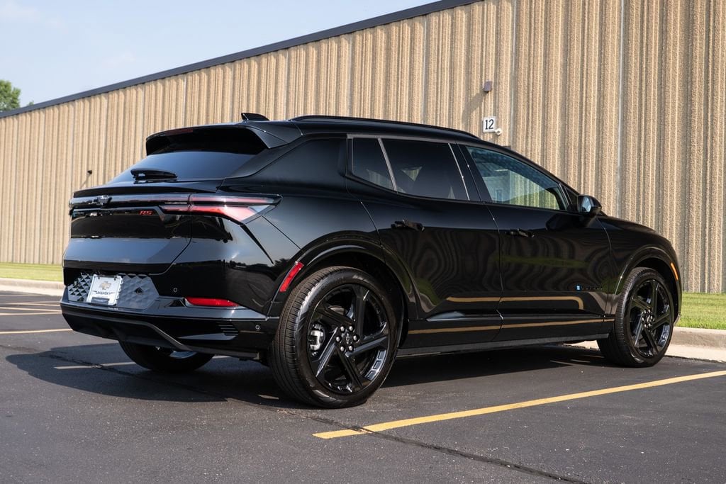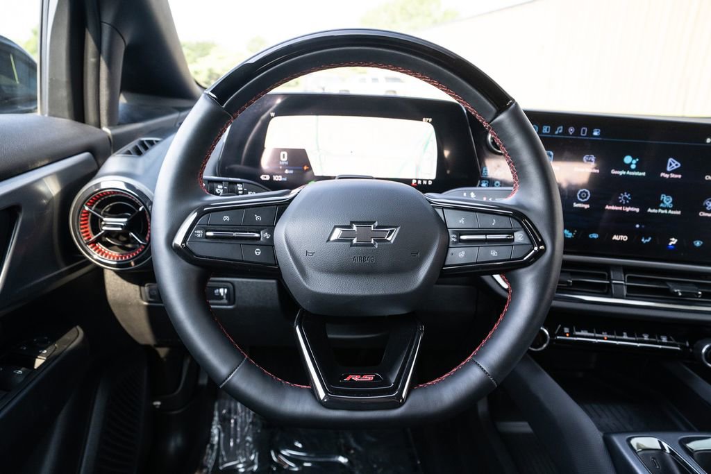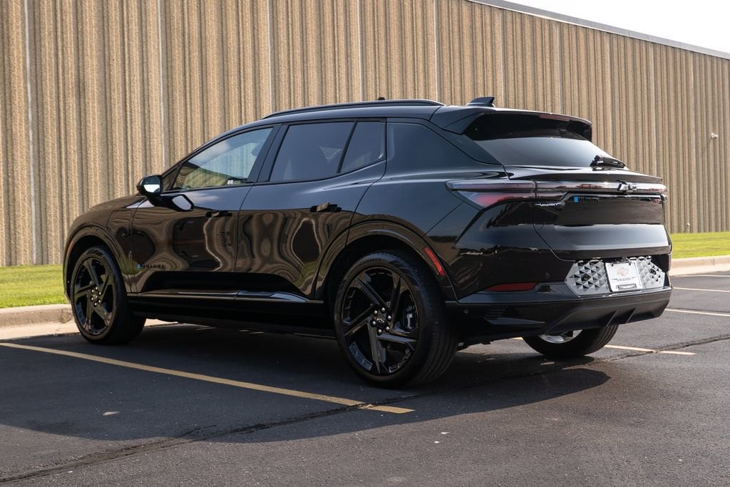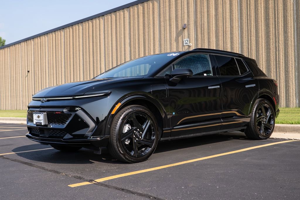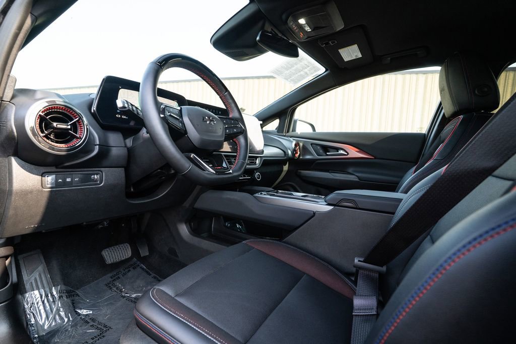 Preferred Equipment Group 0RP, Equinox EV RS, Black, 4-Wheel Disc Brakes, 6 Speakers, 6-Speaker Audio System Feature, 6-Way Manual Front Passenger Seat Adjuster, 8-Way Power Driver Seat Adjuster, ABS brakes, Air Conditioning, Alloy wheels, AM/FM radio: SiriusXM with 360L, Auto High-beam Headlights, Auto-dimming Rear-View mirror, Automatic temperature control, Brake assist, Bumpers: body-color, Compass, Delay-off headlights, Driver 4-Way Power Lumbar Control, Driver door bin, Driver vanity mirror, Dual front impact airbags, Dual front side impact airbags, Electronic Stability Control, Emergency communication system: OnStar and Chevrolet connected services capable, Evotex Seat Trim, Four wheel independent suspension, Front anti-roll bar, Front Bucket Seats, Front Center Armrest, Front reading lights, Fully automatic headlights, Heated door mirrors, Heated Driver & Fr Passenger Seats Cushion & Seatback, Heated front seats, Heated steering wheel, Illuminated entry, Knee airbag, Low tire pressure warning, Navigation system: Google built-in compatibility (select service plan required, terms and limitations apply), Occupant sensing airbag, Outside temperature display, Overhead airbag, Overhead console, Panic alarm, Passenger door bin, Passenger vanity mirror, Power door mirrors, Power driver seat, Power Liftgate, Power steering, Power windows, Radio: 17.7 Diagonal Advanced Color LCD Display, Rear anti-roll bar, Rear reading lights, Rear seat center armrest, Rear window defroster, Rear window wiper, Remote keyless entry, Security system, SiriusXM w/360L, Speed control, Split folding rear seat, Spoiler, Sport steering wheel, Steering wheel mounted audio controls, TBD Axle Ratio, Telescoping steering wheel, Tilt steering wheel, Traction control, Trip computer, Turn signal indicator mirrors, Variably intermittent wipers, and Wheels: 21 Black Painted Aluminum.