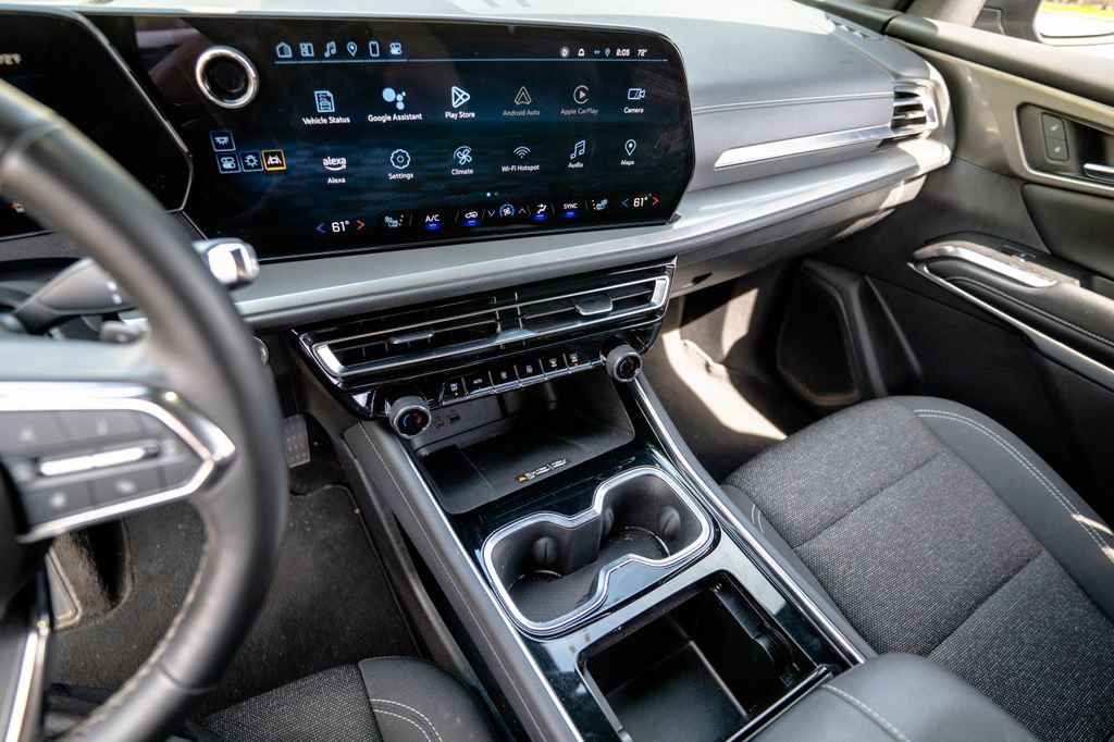 Preferred Equipment Group 2LT, CarBravo Certified Tier Certified, AWD, 3rd row seats: split-bench, 4-Way Manual Front Passenger Seat Adjuster, 4-Wheel Disc Brakes, 6 Speakers, 6-Speaker Audio System Feature, 8-Way Power Driver Seat Adjuster, ABS brakes, Air Conditioning, Alloy wheels, AM/FM radio: SiriusXM with 360L, Apple CarPlay/Android Auto, Auto High-beam Headlights, Automatic temperature control, Brake assist, Bumpers: body-color, Compass, Delay-off headlights, Driver 4-Way Power Lumbar Seat Adjuster, Driver door bin, Driver vanity mirror, Dual front impact airbags, Dual front side impact airbags, Electronic Stability Control, Emergency communication system, Exterior Parking Camera Rear, Four wheel independent suspension, Front anti-roll bar, Front Bucket Seats, Front Center Armrest, Front dual zone A/C, Front reading lights, Fully automatic headlights, Heated door mirrors, Heated front seats, Heated steering wheel, Illuminated entry, Low tire pressure warning, Navigation System, Occupant sensing airbag, Outside temperature display, Overhead airbag, Overhead console, Panic alarm, Passenger door bin, Passenger vanity mirror, Power door mirrors, Power driver seat, Power Liftgate, Power steering, Power windows, Premium Cloth Seat Trim, Radio data system, Radio: 17.7 Diagonal Display, Rear air conditioning, Rear anti-roll bar, Rear reading lights, Rear window defroster, Rear window wiper, Remote keyless entry, Security system, SiriusXM w/360L, Speed control, Speed-sensing steering, Spoiler, Steering wheel mounted audio controls, Tachometer, TBD Axle Ratio, Telescoping steering wheel, Tilt steering wheel, Traction control, Trip computer, Turn signal indicator mirrors, Variably interm