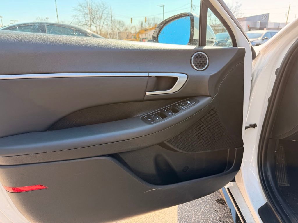 Option Group 01, Sonata SEL, CarBravo Certified Tier Certified, Black Cloth, 17 x 7.0J Aluminum Alloy Wheels, 4-Wheel Disc Brakes, 6 Speakers, ABS brakes, Air Conditioning, Alloy wheels, AM/FM radio: SiriusXM, Apple CarPlay & Android Auto, Auto High-beam Headlights, Automatic temperature control, Brake assist, Bumpers: body-color, Delay-off headlights, Driver door bin, Driver vanity mirror, Dual front impact airbags, Dual front side impact airbags, Electronic Stability Control, Emergency communication system: Bluelink, Exterior Parking Camera Rear, Four wheel independent suspension, Front anti-roll bar, Front Bucket Seats, Front Center Armrest, Front dual zone A/C, Front reading lights, Fully automatic headlights, Heated door mirrors, Heated Front Bucket Seats, Heated front seats, Illuminated entry, Knee airbag, Low tire pressure warning, Occupant sensing airbag, Outside temperature display, Overhead airbag, Overhead console, Panic alarm, Passenger door bin, Passenger vanity mirror, Power door mirrors, Power driver seat, Power steering, Power windows, Premium Cloth Seating Surfaces, Radio data system, Radio: AM/FM/HD/SiriusXM, Rear anti-roll bar, Rear seat center armrest, Rear side impact airbag, Rear window defroster, Remote keyless entry, Security system, Speed control, Speed-sensing steering, Speed-Sensitive Wipers, Split folding rear seat, Steering wheel mounted audio controls, Tachometer, Telescoping steering wheel, Tilt steering wheel, Traction control, Trip computer, and Variably intermittent wipers.