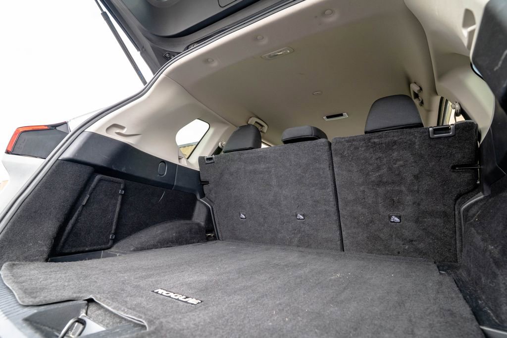 Rogue SV, CarBravo Certified Tier Certified, Brilliant Silver Metallic, 18 Aluminum Alloy Wheels, 4-Wheel Disc Brakes, 5.604 Axle Ratio, 6 Speakers, ABS brakes, Air Conditioning, Alloy wheels, AM/FM Radio, AM/FM radio: SiriusXM, Auto High-beam Headlights, Automatic temperature control, Brake assist, Bumpers: body-color, Cloth Seat Trim, Delay-off headlights, Driver door bin, Driver vanity mirror, Dual front impact airbags, Dual front side impact airbags, Electronic Stability Control, Emergency communication system: NissanConnect Services, Floor Mats w/1-Piece Cargo Area Protector, Four wheel independent suspension, Front anti-roll bar, Front Bucket Seats, Front Center Armrest, Front dual zone A/C, Front reading lights, Fully automatic headlights, Heated door mirrors, Illuminated entry, Knee airbag, Low tire pressure warning, NissanConnect featuring Apple CarPlay and Android Auto, Occupant sensing airbag, Outside temperature display, Overhead airbag, Overhead console, Panic alarm, Passenger door bin, Passenger vanity mirror, Power door mirrors, Power driver seat, Power steering, Power windows, Radio data system, Rear anti-roll bar, Rear Parking Sensors, Rear seat center armrest, Rear side impact airbag, Rear window defroster, Rear window wiper, Remote keyless entry, Speed control, Speed-Sensitive Wipers, Split folding rear seat, Spoiler, Steering wheel mounted audio controls, Tachometer, Telescoping steering wheel, Tilt steering wheel, Traction control, Trip computer, and Variably intermittent wipers.